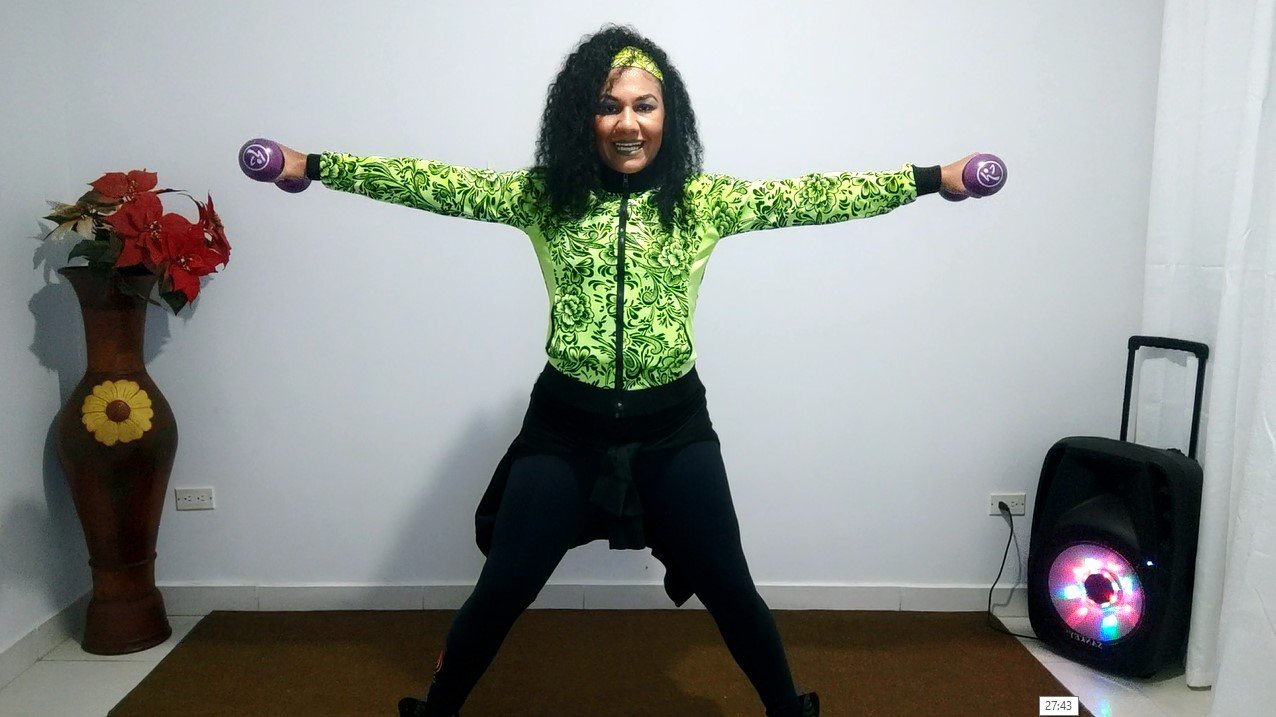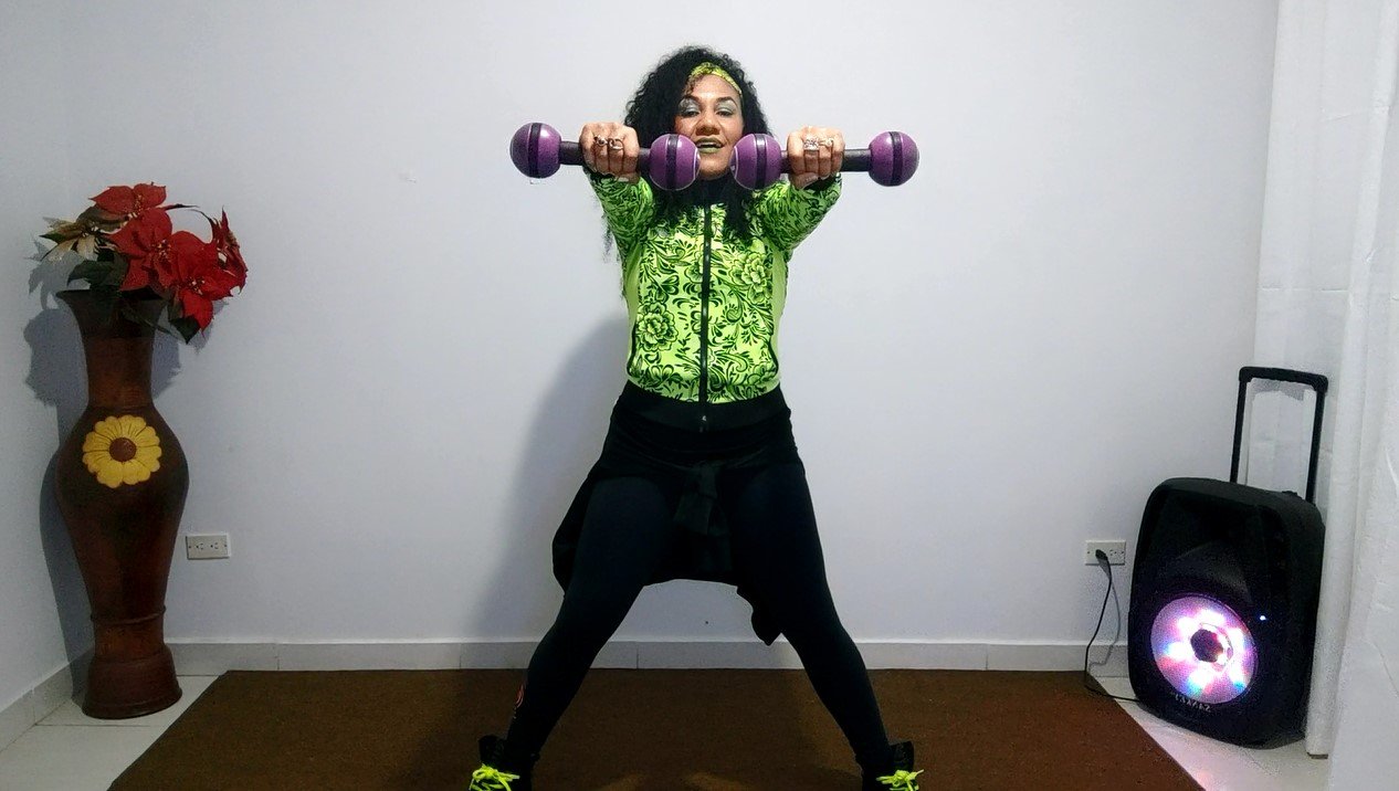 En nuestras clases, combinamos cardio, baile, trabajo con pesas, y ejercicios de tonificación muscular. Si cuentas con equipos como pelotas, ligas, pesas o bandas elásticas, los utilizaremos para potenciar tu entrenamiento y llevarlo al siguiente nivel. Si no tienes equipo, no te preocupes, también ofreceremos alternativas sin ellos, adaptando cada ejercicio para que todos puedan participar.